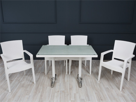 - Kullanım rahatlığı ve temizleme kolaylığı hedeflenmiş olan masa takımı aynı zamanda şık bir görüntü sunar.